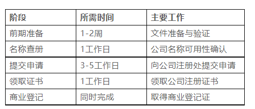 注册/开公司流程时间表
