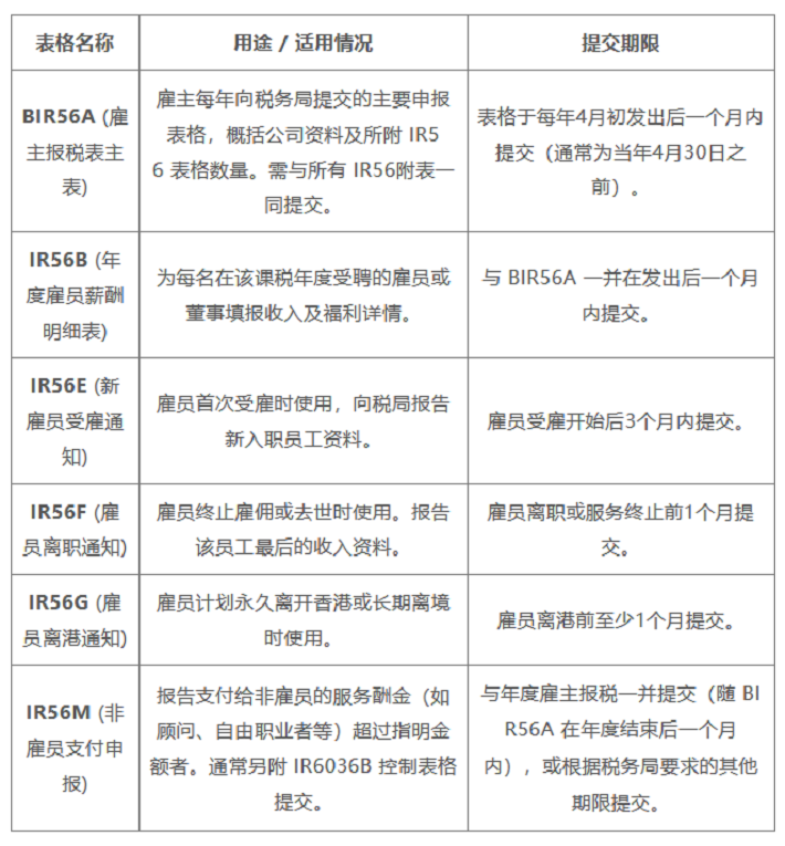 主要包括两部分:BIR56A和 IR56B(即俗称的「雇主填报的薪酬及退休金报税表」)。