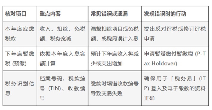 留意薪俸税评税通知书的4大关键日期和注意事项,包括反对评税、修订评税和暂缓缴税的申请期限,以及税单的税款缴纳日期,纳税人需核对税单的正确性,如有错误应在限期内提出申诉和修正。