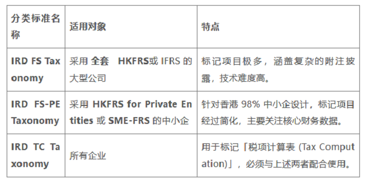 要生成合格的 iXBRL 文件,企业必须根据自身的会计准则,选择正确的「税务局分类标准架构 (IRD Taxonomy Package)」进行数据标记。选错分类标准将导致文件无法通过验证。