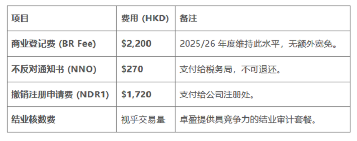 1.商业登记费 (BR Fee): 2025/26 年度费用为HK$2,200。这是每年必须缴交的「入场费」。