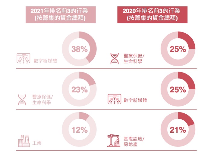 在香港 2021 年的 IPO上市中 ,传媒及电讯业、医疗保健及生命科学公司及工业占 IPO 集资额的 73%,另有 5 家公司和 20 家生物科技公司分别遵循第 19C 章和第 18A 章上市,还有 9 家具有不同投票权架构的公司上市。这些在其他地区交易所已经上市过的公司,“回流”到香港第二次上市,也给他们带了新的发展机遇(如小鹏汽车及理想汽车)。